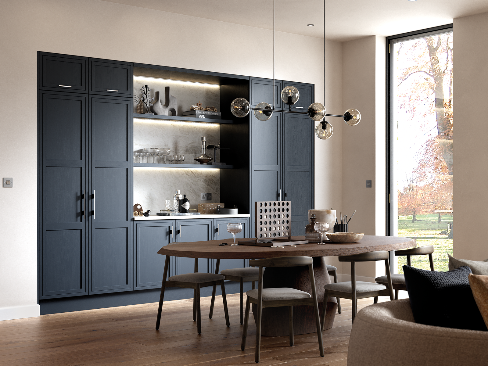 Ashbourne’s understated inframe-effect shaker style suits to both classic and contemporary settings. Its natural ash grain combined with a subtle line detail on the outer door frame adds richness to its design. Paired with an extensive selection of accessories, Ashbourne’s versatility means that it can be the perfect backdrop to any room throughout your home.
