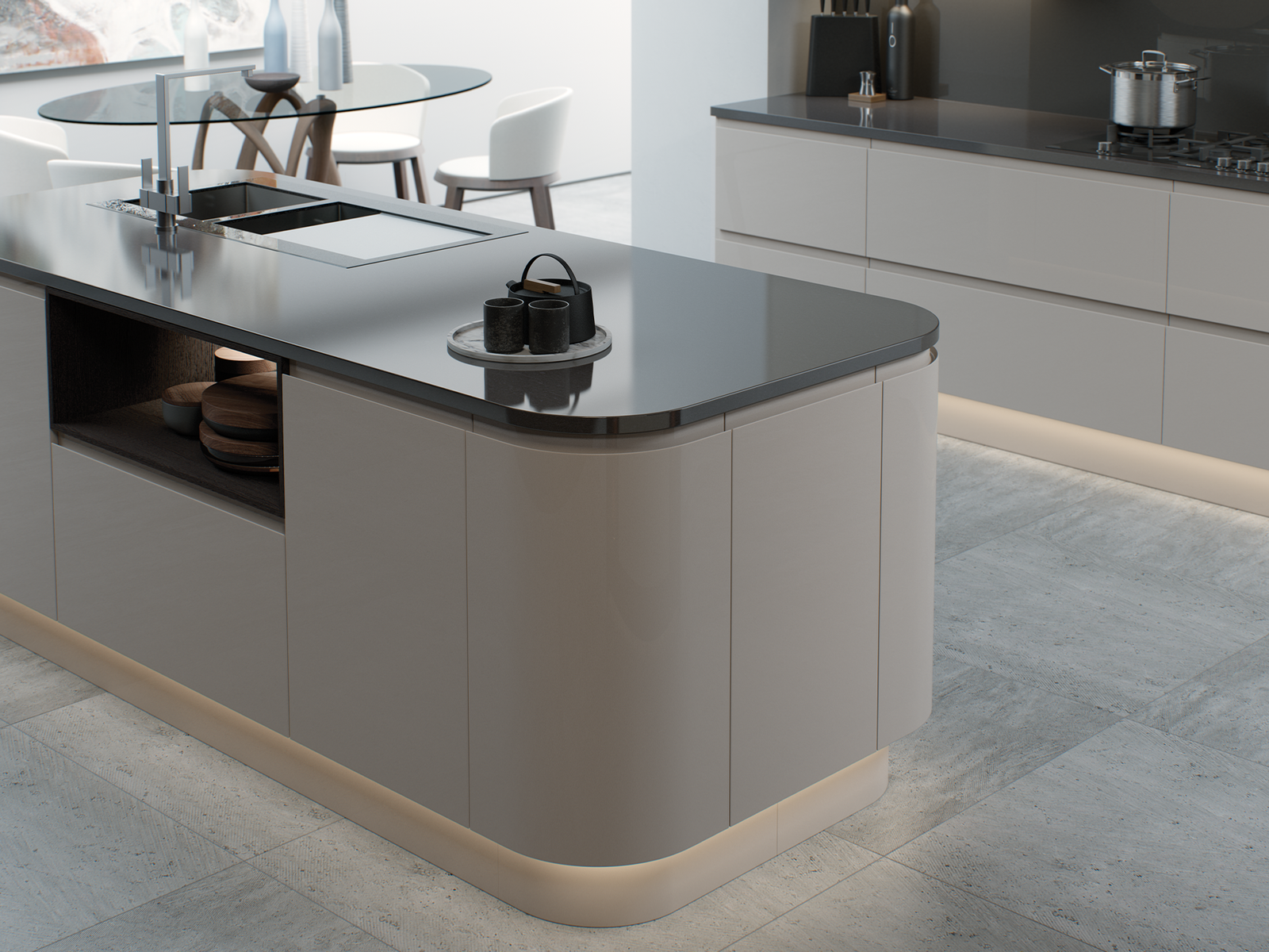 Make the ultimate contemporary style statement with the chic, handleless design of Sherwood Gloss. Featuring an exceptional mirror-like finish, choose from a selection of on-trend colours to create a stylish space which can extend to other areas beyond the kitchen.